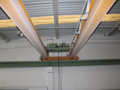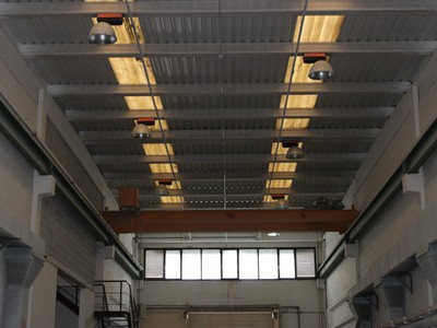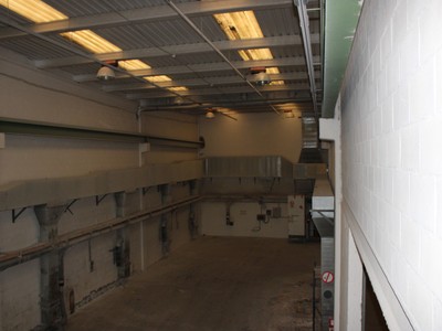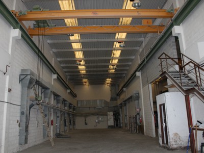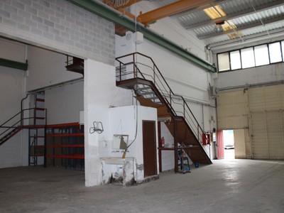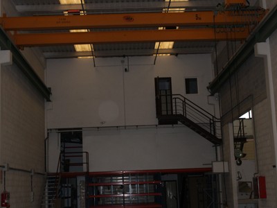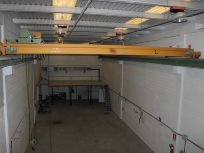 Planta baja: zona de trabajo diáfana de 688 m2, con un baño y 2 grúas puente de 5 Tn/cada una.