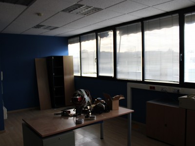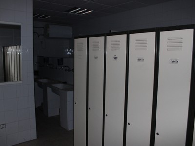 Segunda entreplanta: oficina grande y despacho con dos baños, vestuarios dos baños y tres duchas, pequeño espacio vacío como comedor. Aire acondicionado.